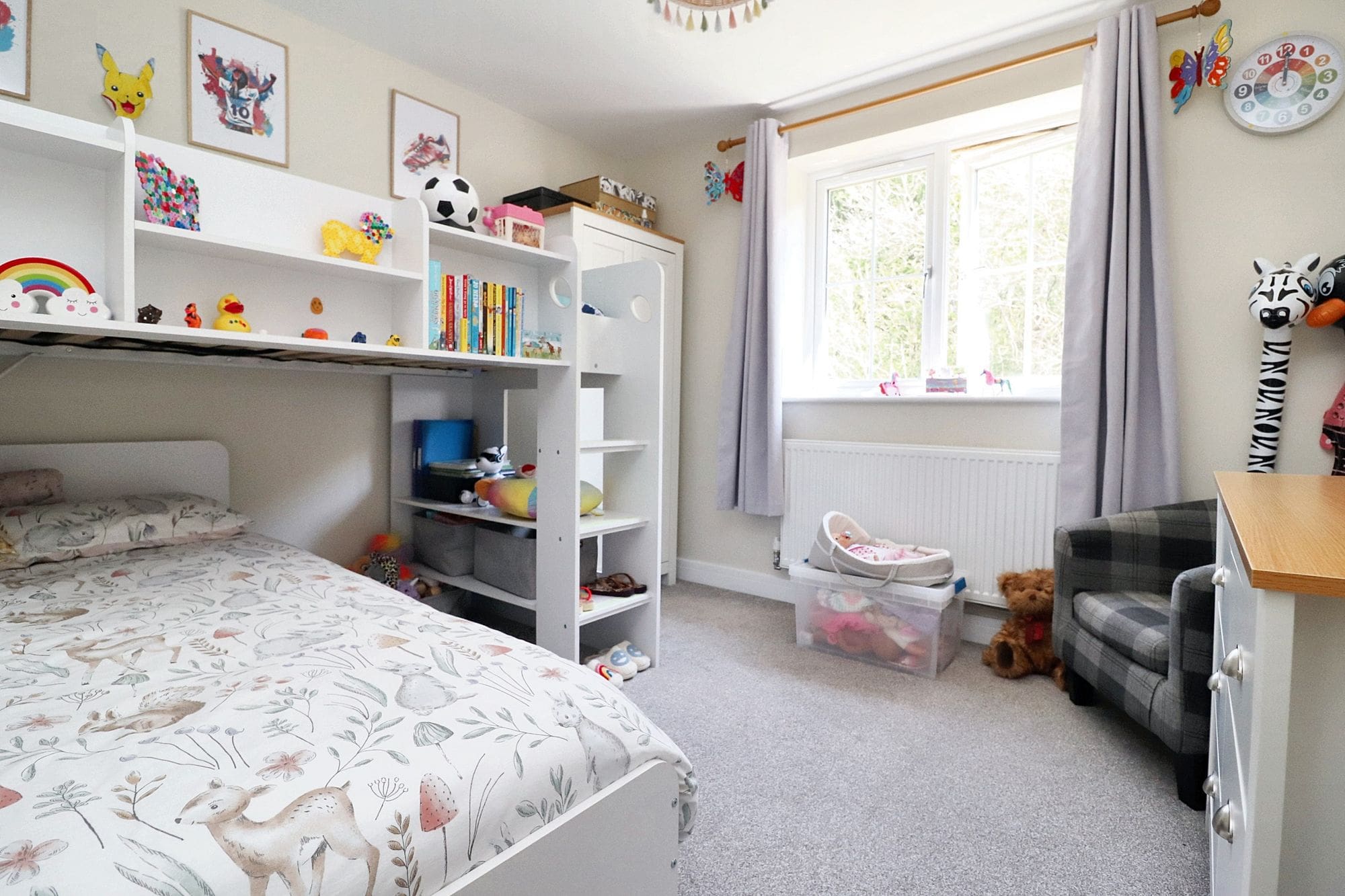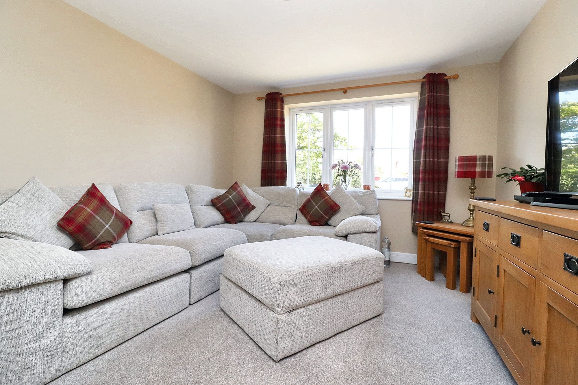 To the front of the property is a well-presented block paved driveway which leads to a carport providing off road parking for two vehicles and offering gated pedestrian access to the garden. The rear garden has been landscaped to offer a patio area and additional raised decked seating/entertainment area, leaving the rest of the garden laid to artificial lawn with drainage, raised borders which are well stocked with a variety of flowers and shrubs. There is also a large outbuilding currently used as a playroom and garden shed offering useful storage space.