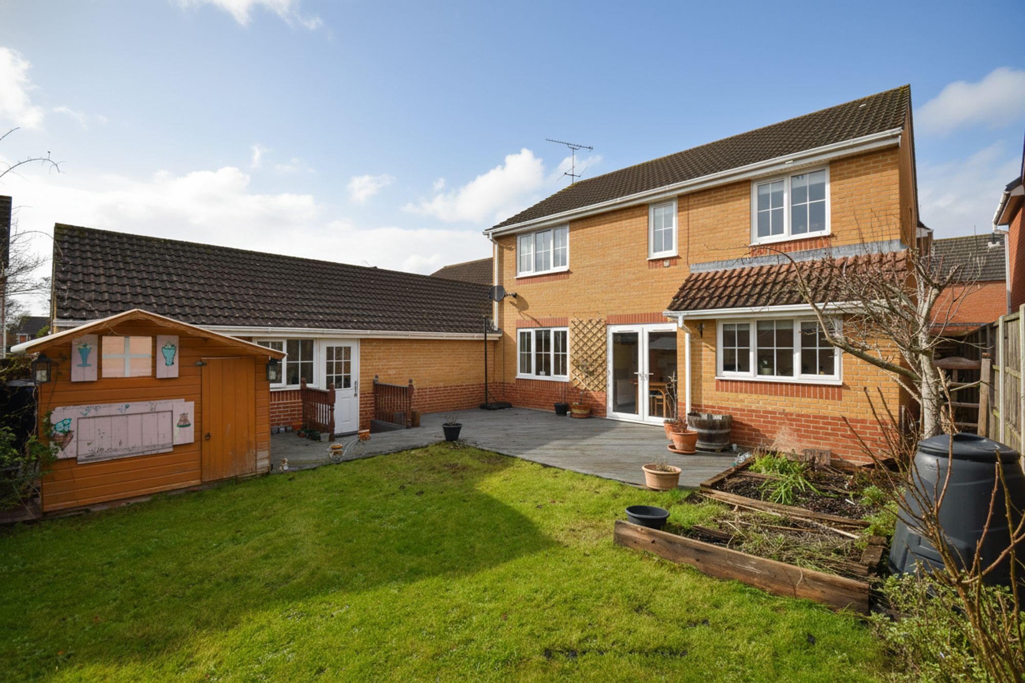 You enter the property into a spacious entrance hall with doors leading to all principal rooms, including a cloakroom, and stairs rising to the first floor. A door to one side opens into the lounge, which features a bay-fronted window to the front aspect and offers ample space for free-standing furniture. From the hallway, further doors lead to the study, which benefits from a window to the side aspect, and the family room, a versatile space with dual-aspect windows providing plenty of natural light. The true heart of the home is the kitchen/breakfast room, which enjoys windows and French doors opening onto the rear garden and is enhanced by inset spotlights. There is generous space for a large dining table and chairs, making it ideal for both family living and entertaining. The kitchen is fitted with a range of wall and base units, with cupboards and drawers beneath. An opening leads through to the utility room, which has a door providing access to the side of the property. To the first floor, the carpeted landing offers loft access and doors to all bedrooms and the family bathroom. The master bedroom has a window to the front aspect, is laid to carpet, and features fitted wardrobes along one wall, with a door leading to the en-suite shower room. Bedroom two benefits from dual-aspect windows and is also carpeted, offering a dressing area to one end, fitted wardrobes, and access to its own en-suite. Bedrooms three and four both overlook the rear of the property and are laid to carpet, each with fitted wardrobes.