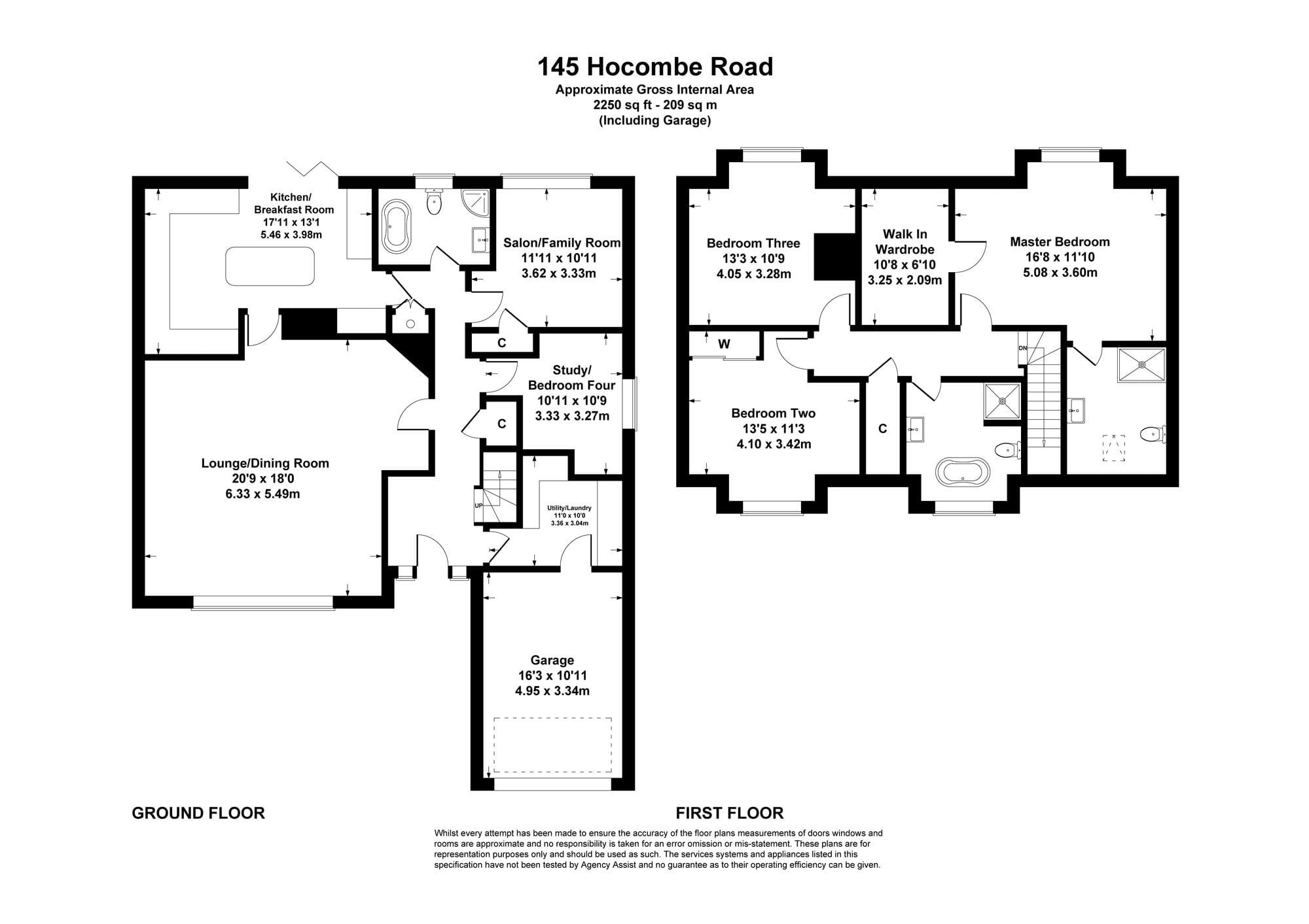 The front door opens into a welcoming entrance hall, with stairs leading to the first floor and access to a convenient storage cupboard. To the front of the property is the spacious lounge/dining room, measuring approximately 20ft. This room features an inset wood burner, creating a cozy focal point. A door leads through to the stunning kitchen/breakfast room, which boasts bi-fold doors opening out to the rear garden. The kitchen is beautifully fitted with a range of high-gloss wall and base units, worktops, a central island with breakfast bar, sink with food waste disposal unit, induction hob, double ovens, built-in coffee machine, and microwave. A utility room offers additional storage with matching units, space for appliances, inset sink, and access to the garage.