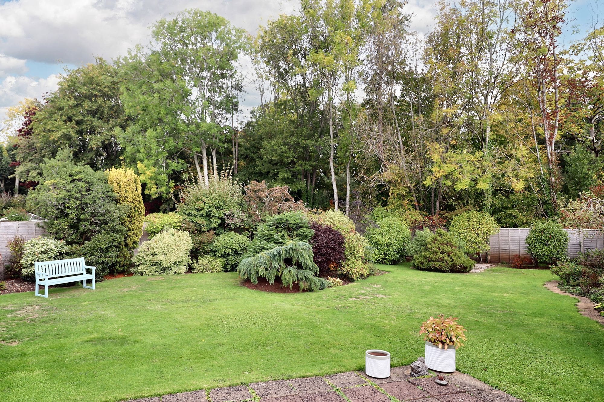 To the front of the property, a driveway provides off-road parking and leads to a garage with an up-and-over door. Side pedestrian access is available, enhanced by mature planted shrubbery that adds greenery and curb appeal. The stunning, secluded rear garden offers a peaceful retreat, featuring a paved seating area—ideal for al fresco dining and relaxation. The remainder of the garden is laid to lawn and bordered by a variety of established shrubs and plants, creating a beautifully landscaped and private outdoor space.
