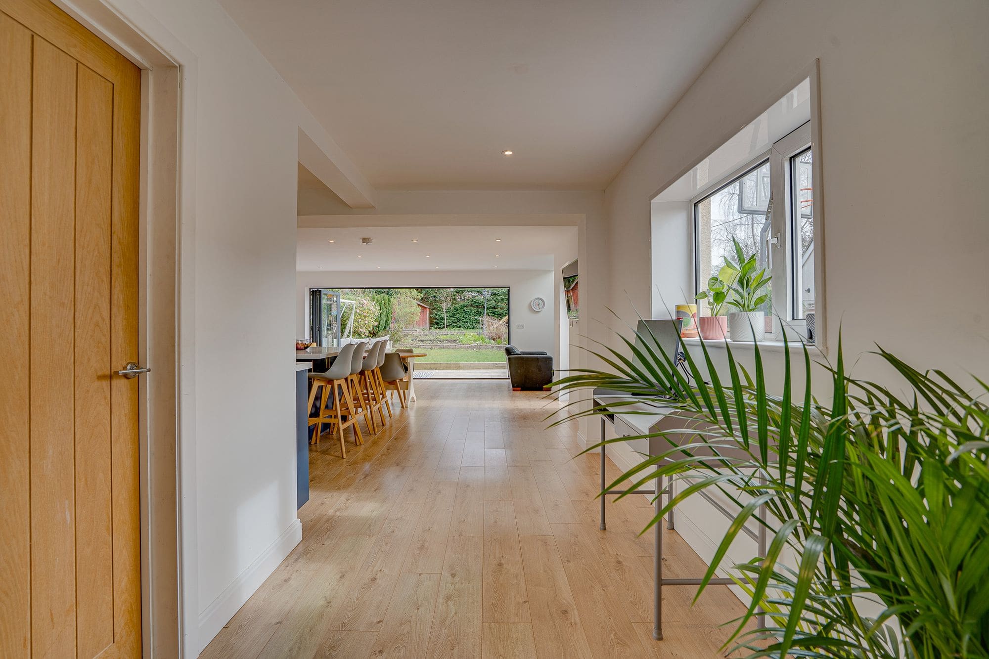 This exceptional four-bedroom detached family home occupies a generous, established plot just a short walk from the village centre. Thoughtfully extended by the current owners, the property now offers approximately 1,905 sq ft of beautifully presented living space, finished to a high standard throughout. The ground floor accommodation comprises a welcoming entrance hall, a comfortable lounge, utility room, cloakroom, and an impressive 31ft open-plan kitchen, dining, and family area—ideal for modern living and entertaining. Upstairs, there are four well-proportioned bedrooms, including a superb principal suite featuring a dressing room and en-suite, along with a stylish family bathroom. Externally, the property benefits from a large driveway providing ample off-road parking, a detached double garage, and a private, secluded rear garden.