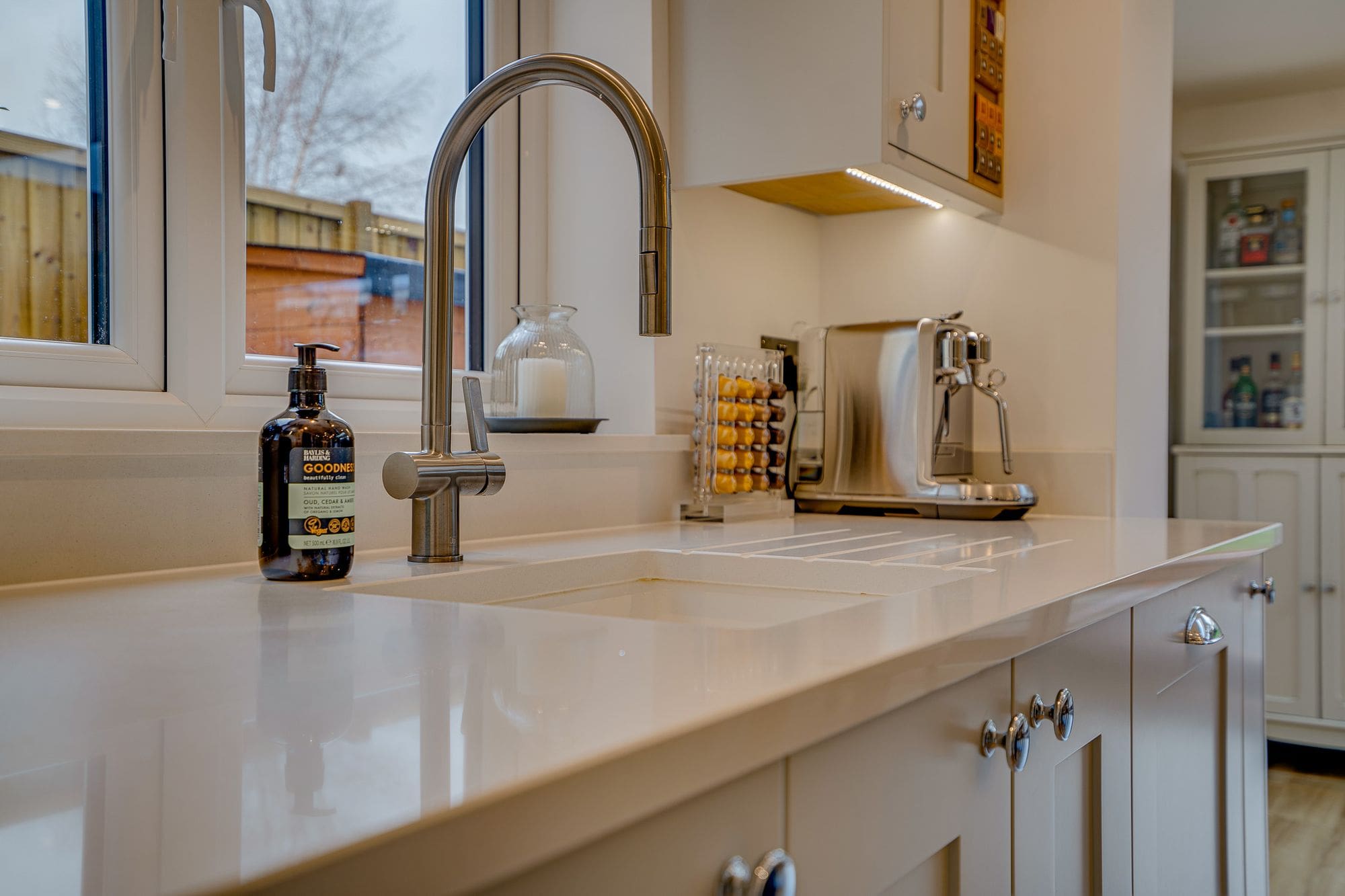 You enter the property into a spacious entrance hall, with doors leading to all principal ground-floor rooms, stairs rising to the first floor, and bespoke built-in storage. A door to one side opens into the lounge, which enjoys a window to the front aspect and offers ample space for a variety of freestanding furniture. The true heart of the home is the impressive 20ft kitchen/dining room, featuring bi-folding doors that open onto the rear garden and plenty of room for a large dining table and chairs—perfect for both everyday living and entertaining. The kitchen is fitted with a range of shaker-style wall and base units, incorporating cupboards and drawers beneath complementary quartz worktops. A central island provides additional storage and incorporates a breakfast bar. To the first floor are three well-proportioned bedrooms, all served by a contemporary family bathroom.