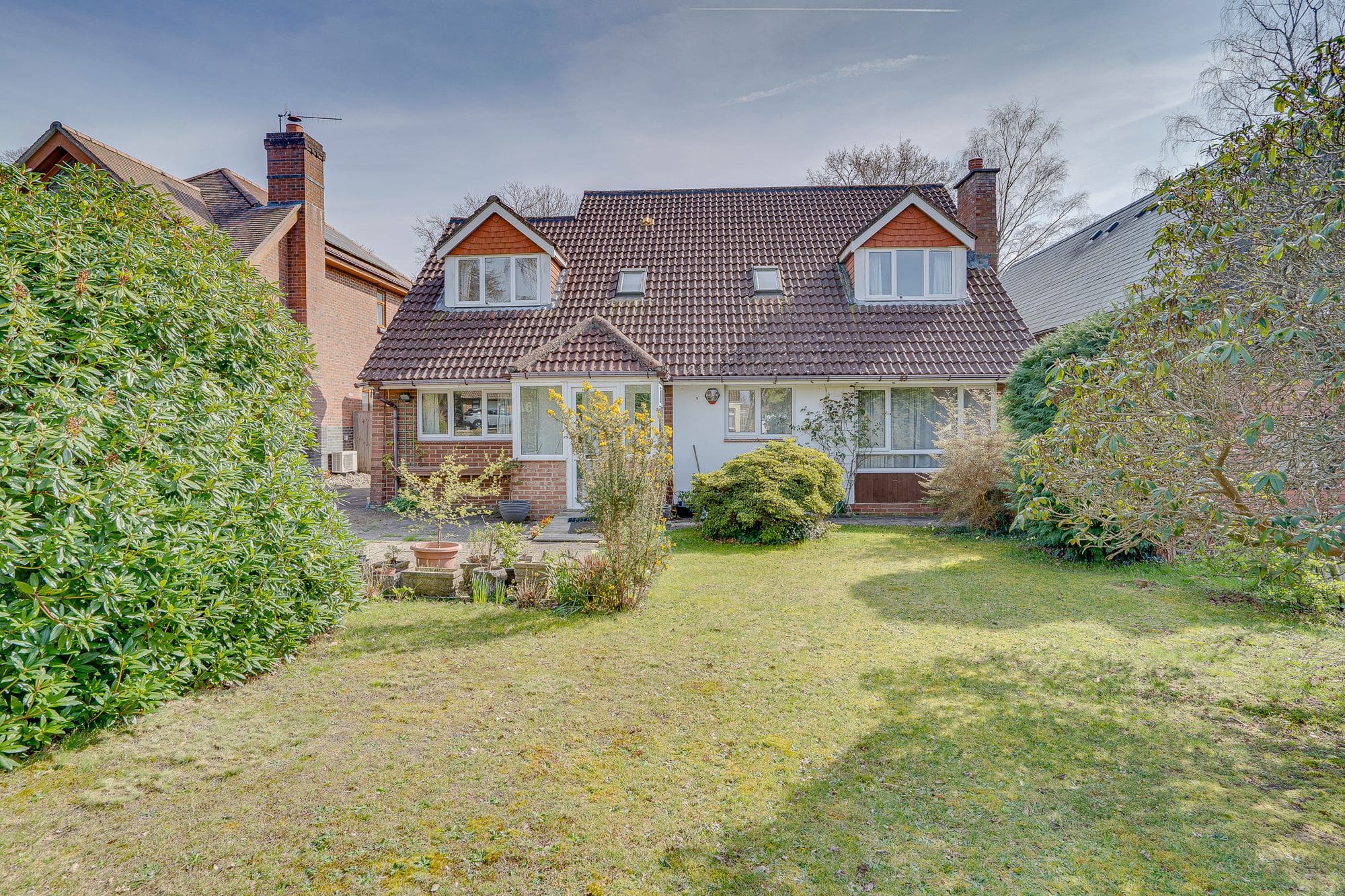 The property benefits from a large frontage with a driveway that can accommodate parking for multiple vehicles, with the remainder laid to lawn and enhanced by a variety of planted shrubbery. There is gated pedestrian access to the rear, along with access to the garage via an up-and-over door. The stunning rear garden offers total seclusion and features a paved seating area, a greenhouse, and a selection of beautiful trees and shrubs, with the rest laid to lawn.