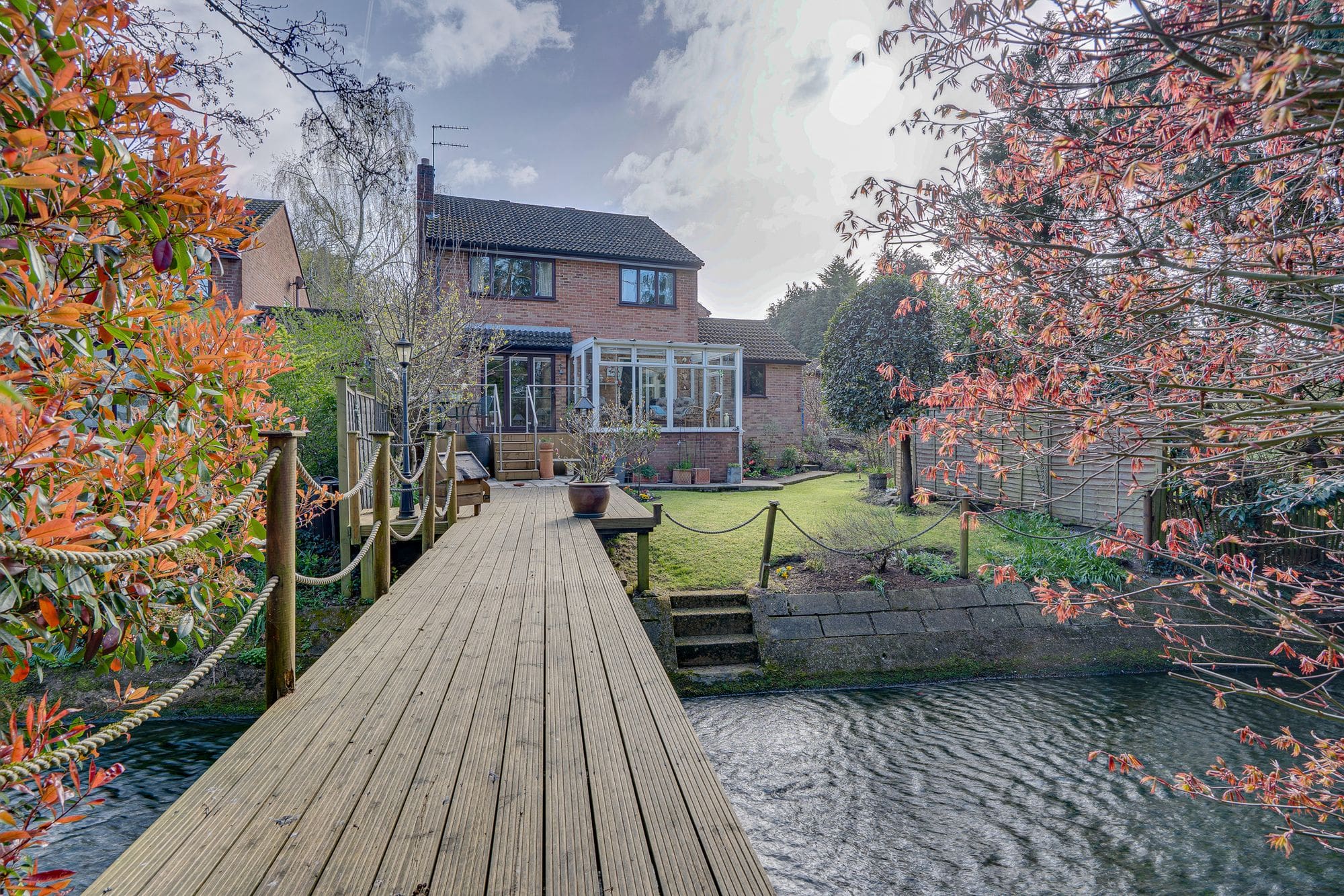This exceptional four-bedroom detached home is set on a secluded plot, with the tranquil Monks Brook meandering through the rear garden. The current owners have tastefully modernised the property throughout. The ground floor accommodation comprises an entrance hall, study, lounge, dining room, kitchen, conservatory, and cloakroom. On the first floor, there are four bedrooms, including a master with en-suite, as well as a family bathroom. Externally, the property benefits from a driveway, single and double garages, and a beautifully maintained, highly secluded rear garden.